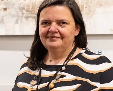 Mariela Monges Aréjola (Asunción, 1971) es una artista visual de sólida trayectoria, reconocida por una obra que amalgama rigor técnico con una profunda introspección filosófica. Su formación integral se consolidó a lo largo de casi dos décadas (2000-2019) bajo la tutela del maestro Ponciano Cárdenas Canedo, un referente en muralismo, escultura y grabado, lo que subraya su dominio de un oficio amplio y disciplinado.