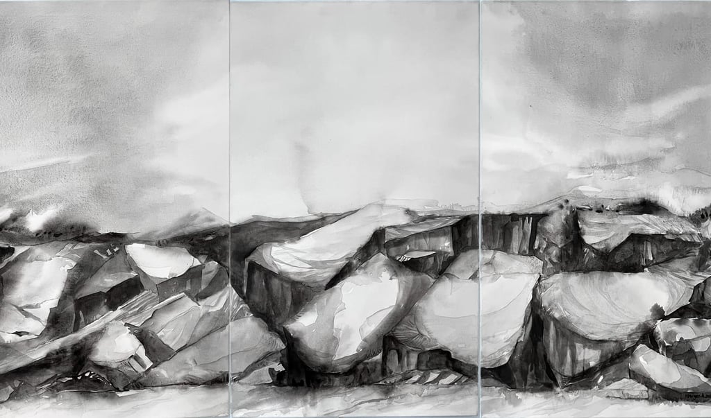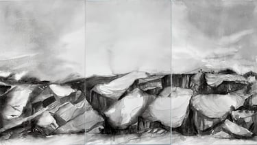Técnica: Triptico Acrílico y Carbonilla sobre lienzo